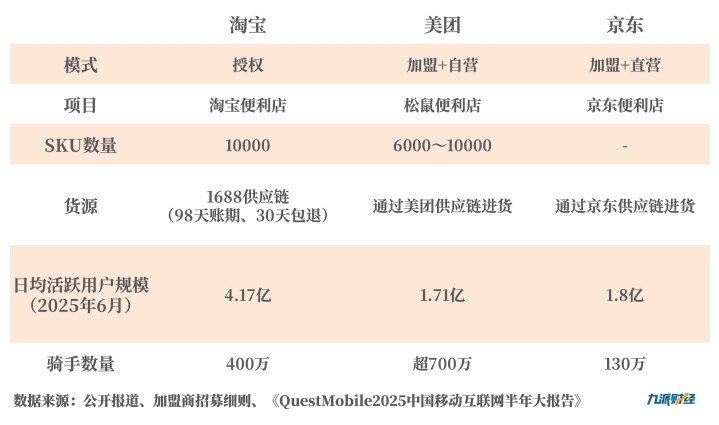 而与美团及京东相比,淘宝便利店的区别在于,选择了最轻的非自营模式。淘宝不建仓、不开店、不控货、不下场自营,不与商家争利,而将“淘宝便利店”以品牌授权形式给到符合标准的商家使用。